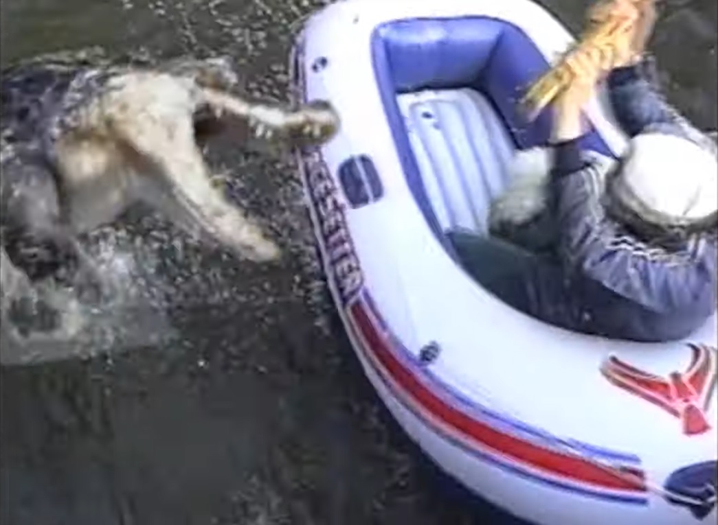 But suddenly they get attacked by the notorious Benjamin, a man eating crocodile. Fortunately Benjamin leaves them be after a while, because they are about to go down a waterfall!